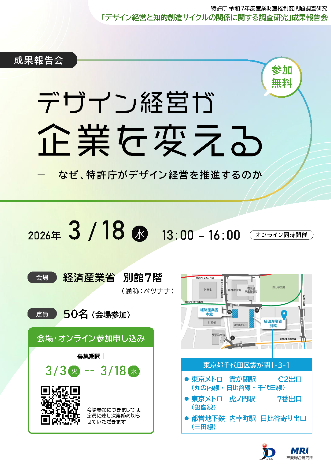 経済産業省・特許庁主催 調査研究成果報告会に登壇しました|デザイン経営が企業と知財をどうつなぐのか(3/18開催)