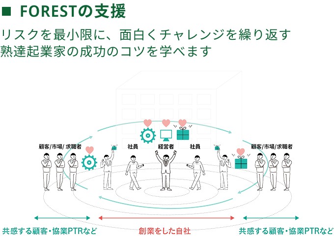 FORESTで実施する支援は熟達企業家の思考法である「エフェクチュエーション」の実践知に基づいています。手持ちのリソースから行動を起こし、顧客やパートナーを巻き込みながらありたい未来を作る。このアプローチで、課題整理と成長戦略の発見を力強くサポートします。プログラムの後半には、ワークショップや交流会を開催予定です。