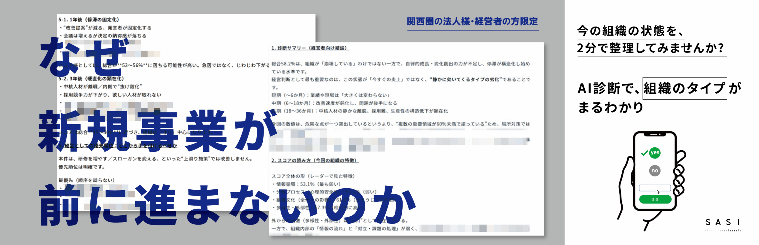 下の音声では、デザイン会社SASIの資料を基に「組織停滞の本当の原因と、それを打破するための具体的な再生計画」についてAIが対話形式で解説しています。