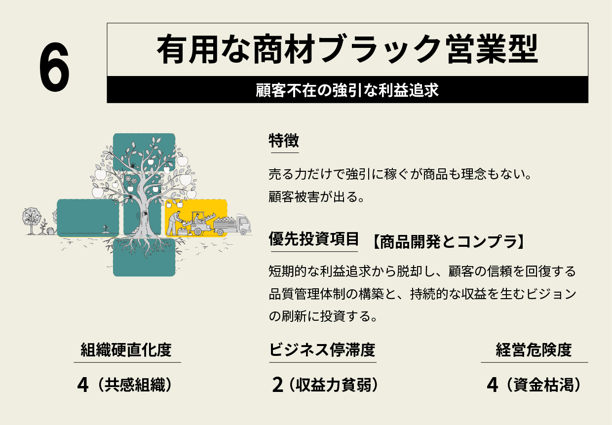 有用な商材ブラック営業型〜顧客不在の強引な利益追求〜